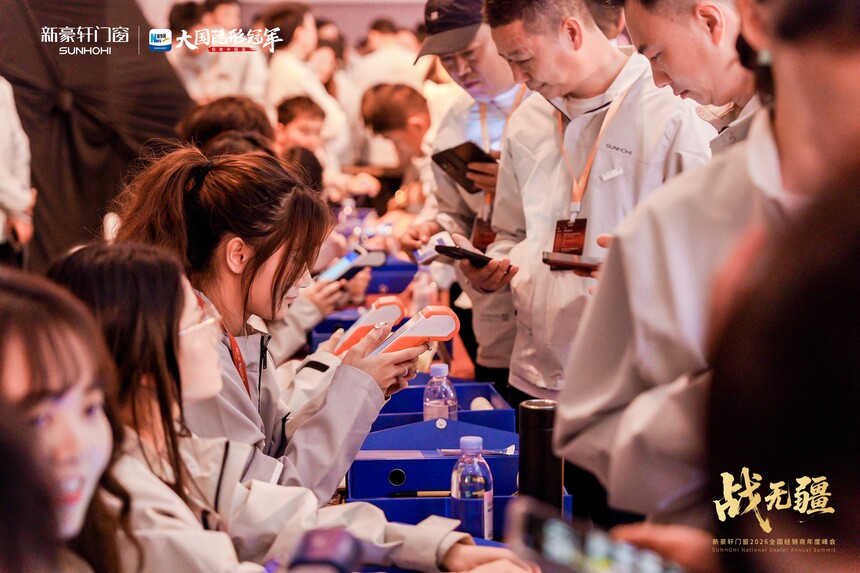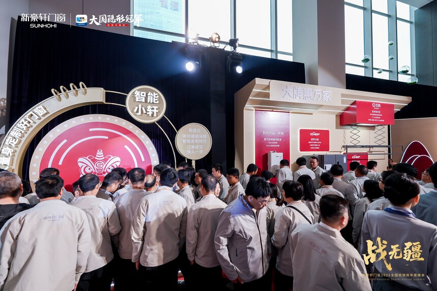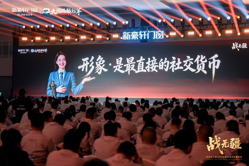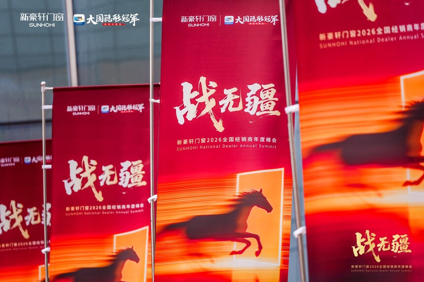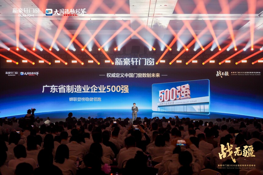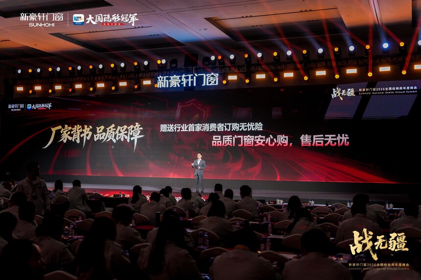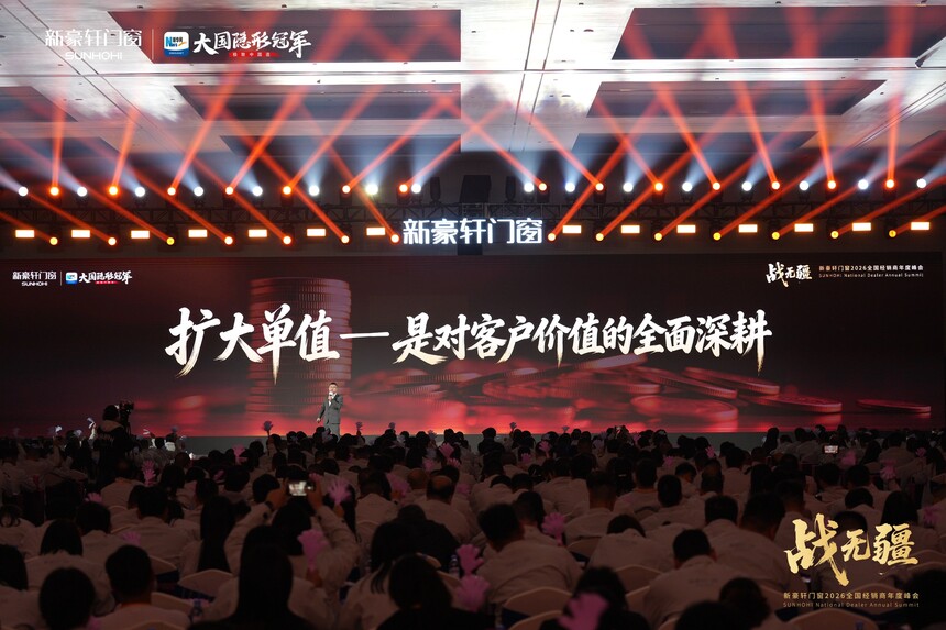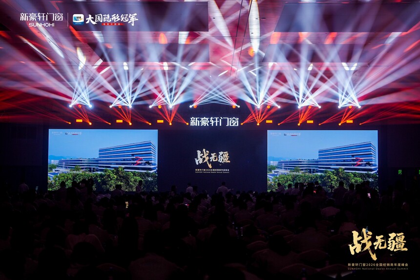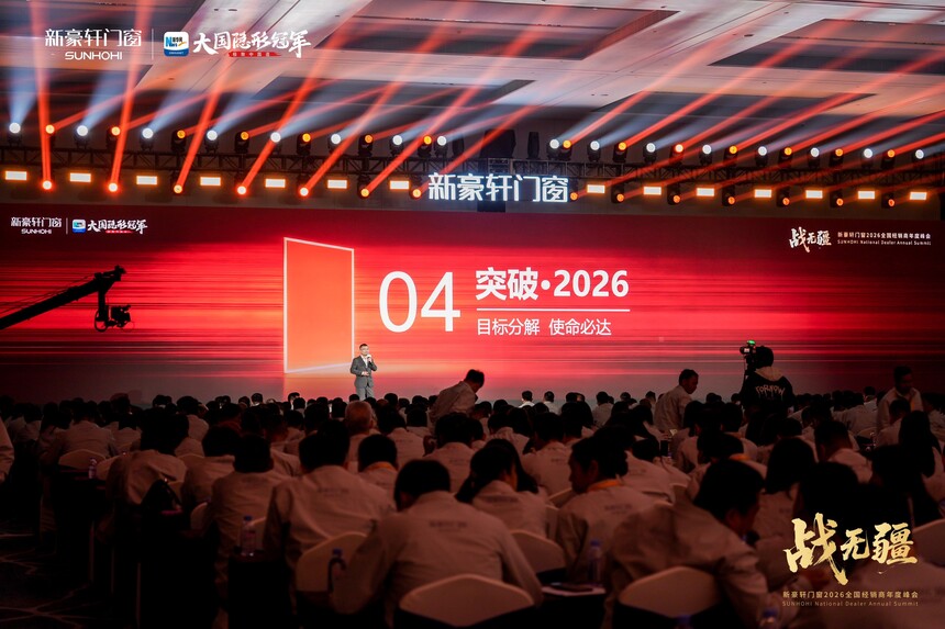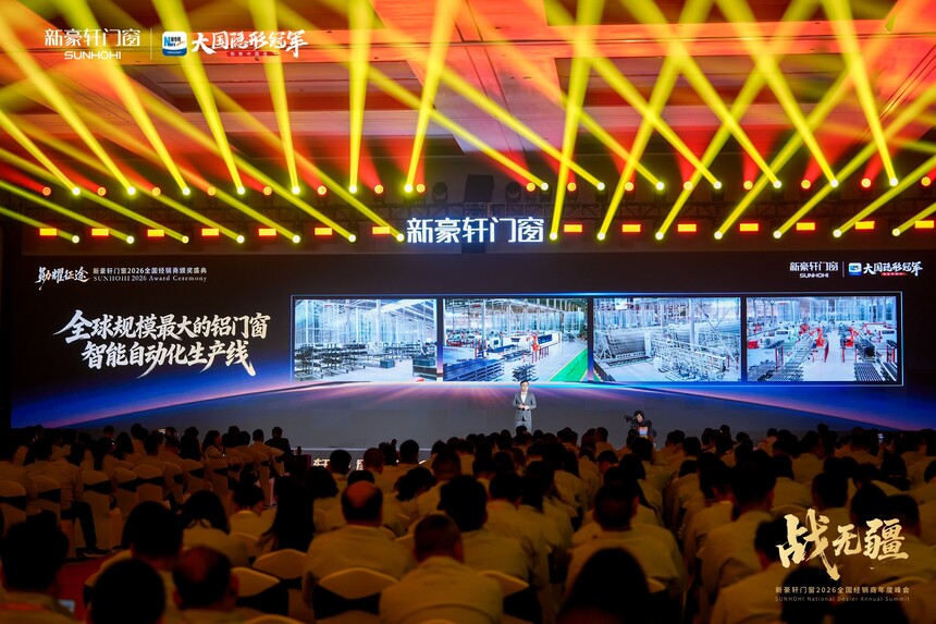 战无疆 向新赢丨新豪轩门窗2026全国经销商年度峰会盛大召开时间:2026-03-12 品质为基,实干为径;浪潮逐鹿,强者突围。品质红利时代下,门窗市场竞争白热化,唯有坚守初心、深耕核心,方能穿越迷雾、稳立潮头。2025年,新豪轩门窗依托国家级绿色工厂,以创新与品质为支撑逆势增长,夯实大国隐形冠军地位。展望2026年,面对消费迭代与渠道变革,新豪轩门窗如何以破局之智拓赛道、以奋进之力续荣光!